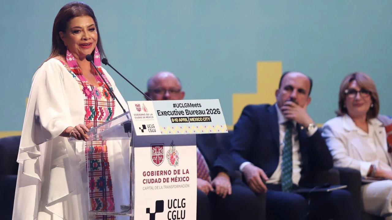 La Jefa de Gobierno, Clara Brugada, dio la bienvenida al Buró Ejecutivo 2026 de Ciudades y Gobiernos Locales Unidos (CGLU) en el Teatro de la Ciudad. El evento, celebrado del 8 al 10 de abril de 2026, contó con 140 representantes locales de 32 países. Durante su intervención, Brugada afirmó: “Desde la Ciudad de México, condenamos con firmeza, el uso o la amenaza de la fuerza, en las relaciones internacionales. Se equivocan quienes pretenden arrastrarnos de regreso a la guerra”. Asimismo, expresó: “Queremos un Mundial con juego limpio (…) un Mundial con derechos plenos para nuestro pueblo. Sin machismo, sin clasismo, sin racismo y sin discriminación. Así que bienvenidas y bienvenidos, todas las culturas y naciones, al Mundial”.
