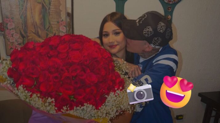 Hermosillo, 14 de abril de 2026.- Santa Fe Klan compartió una fotografía en Instagram junto a la boxeadora Camila Zamorano, en la que aparece besándola en la mejilla y aparentemente regalándole un ramo de flores. En la descripción de la imagen, el cantante etiquetó a la deportista acompañando su nombre con un emoji de corazón.
