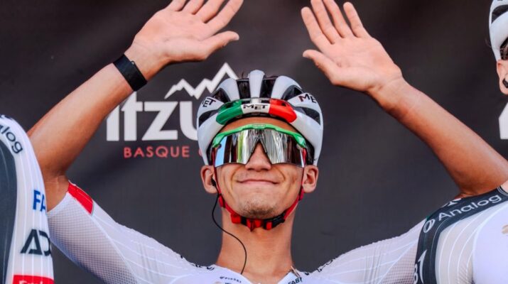 Basauri, 09 de abril de 2026.- Isaac del Toro sufrió una caída en la tercera etapa de la Itzulia Basque Country 2026 y se vio obligado a retirarse de la competencia. El incidente ocurrió a 81 kilómetros de la meta de la jornada, que tenía salida y llegada en Basauri.