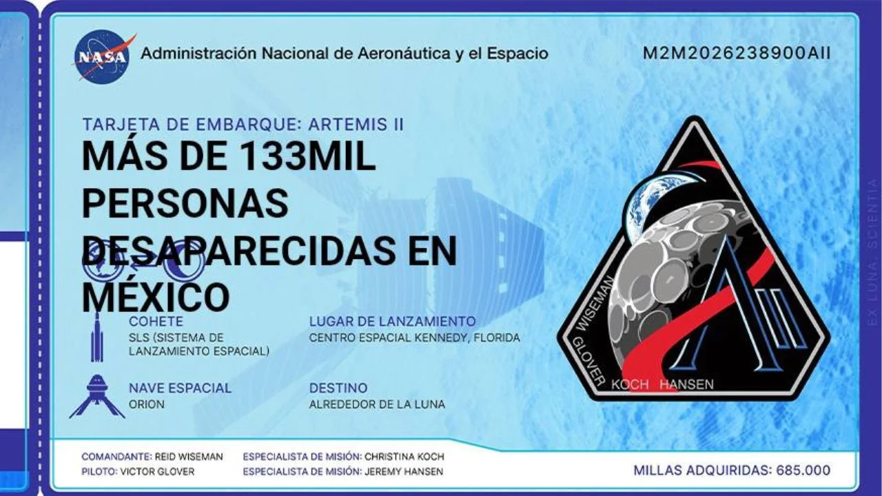Entre la carga simbólica de la misión, más de 50 ‘Tarjetas de Embarque’ con nombres de desaparecidos en México vuelan hacia la Luna. El colectivo de búsqueda ‘Fuerzas Unidas por Nuestros Desaparecidos (as) en Nuevo León’ (FUNDENL) informó que estas tarjetas contienen los nombres de 50 personas desaparecidas en esa entidad, las cuales viajan junto con 5.6 millones de nombres de todo el mundo grabados en una memoria USB.
