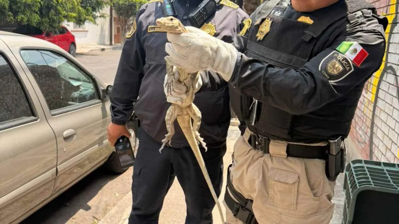 Ciudad De México, 12 de abril de 2026.- Personal de la Secretaría de Seguridad Ciudadana (SSC) resguardó un lagarto de la especie varano que se encontraba en la vía pública de la colonia Unión Postal, en la alcaldía Benito Juárez.