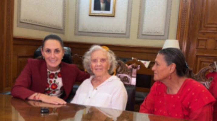 Por su parte, Elena Poniatowska manifestó su emoción ante el encuentro: “me emociono mucho, ya estoy viejita. Para mí, el que Claudia esté en el poder es un logro, yo creo también de todos nosotros”.