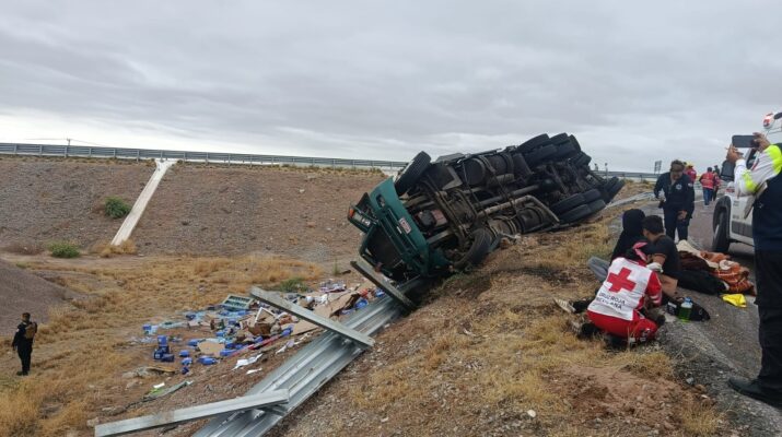 La mañana del domingo, un tráiler volcó en el distribuidor vial de la carretera Gómez Palacio-Jiménez, en el municipio de Gómez Palacio. El tractocamión Kenworth color verde, perteneciente a la empresa Tracasa y cargado con detergente, intentó tomar una curva en la zona del distribuidor vial y terminó volcado. Parte de la carga quedó esparcida sobre el área y varios vecinos del sector se acercaron y comenzaron a realizar actos de rapiña.