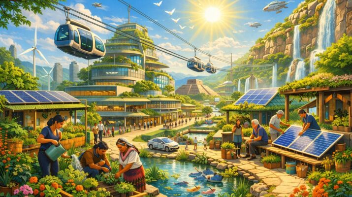 Un tercer frente crítico es la crisis climática en el territorio: incendios, huracanes más intensos, olas de calor y pérdida de biodiversidad. Aquí, la visión solarpunk se aleja del discurso del desastre permanente y propone infraestructura viva: ciudades con corredores biológicos, agricultura regenerativa, techos verdes, reforestación con especies nativas y saberes campesinos integrados a la política pública. Adaptarse no es resistir pasivamente, es rediseñar el territorio para convivir con la naturaleza.